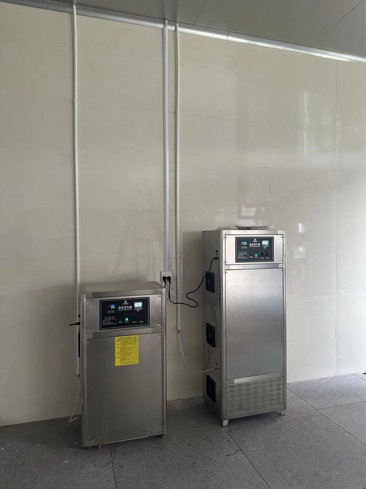 北海市海鮮處理食品車間,面積6000平方,高度3-5米。采用一套 1.5kg/h臭氧發(fā)生器消毒殺菌。